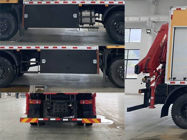 | 其它: | 1、該車主要用于搶險(xiǎn)救災(zāi)、賽事活動(dòng)等的應(yīng)急照明支援;主要專用裝置:照明系統(tǒng),發(fā)電機(jī)組,吊機(jī)等;廂體頂部密閉,不可開啟。2、側(cè)防護(hù)為裙邊結(jié)構(gòu),材料Q235;后防護(hù)材料采用Q235,螺栓連接,截面尺寸125×60mm,下邊緣離地高485mm。3、ABS型號(hào)/生產(chǎn)廠家:3631010-C2000/東科克諾爾商用車制動(dòng)系統(tǒng)(十堰)有限公司。 | ||