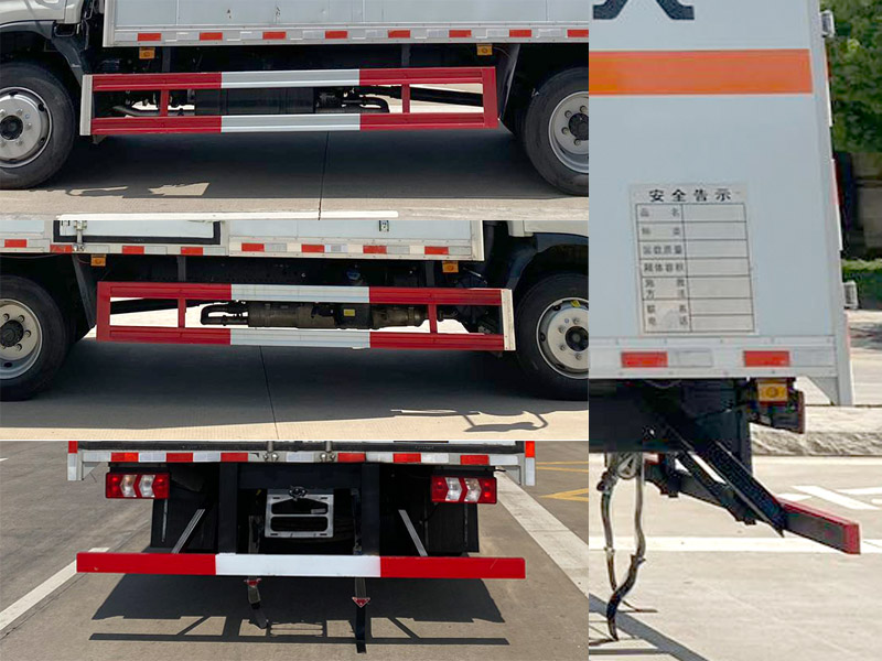 | 其它: | 1、該車適用于運輸危險品,運輸具有獨立容器(瓶)包裝的物品,運送危險物品類項號:9.廂體頂部封閉,不可開啟.2、側、后防護材料均采用Q235,側防護螺栓連接,后防護焊接,截面尺寸(mm)100×50,下邊緣離地高450mm.外形長/后懸/對應關系為(mm):7200/2280,7050/2130.3、僅選用排氣管前置、限速裝置(限速80km/h)、前輪盤式制動及子午線輪胎的底盤,轉向輪安裝輪胎爆胎應急防護裝置.安裝帶有衛(wèi)星定位功能的行駛記錄儀.ABS系統(tǒng)控制器型號/生產廠家:VIE ABS-Ⅱ/浙江萬安科技股份有限公司.發(fā)動機/油耗值(L/100km)對應關系為:D30TCIF2/20.1,HFC4DE2-2E/20.60.該車可選裝ETC車載裝置.4、隨底盤選裝駕駛室.廂體側面選裝不同型式側開門及開門位置或不帶側門,選裝開百葉窗,選裝瓦楞板結構,選裝后門結構. | ||