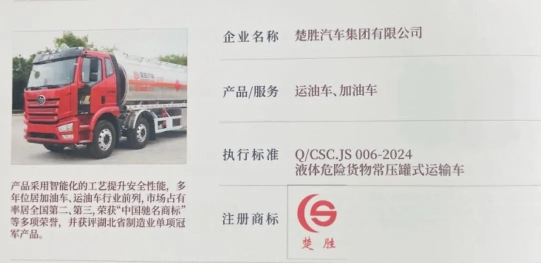 2025年4月9日,湖北省“湖北精品”認定榜單正式發(fā)布!楚勝汽車集團自主研發(fā)的加油車、運油車系列產(chǎn)品,歷經(jīng)技術(shù)先進性、質(zhì)量穩(wěn)定性、市場認可度、品牌影響力四重嚴苛考核,從全省制造業(yè)優(yōu)品中脫穎而出,成功獲此省級質(zhì)量標桿認證!這一榮譽不僅彰顯了楚勝在專用車領(lǐng)域的技術(shù)制高點地位,更以權(quán)威背書印證了“中國質(zhì)造”的硬核實力!