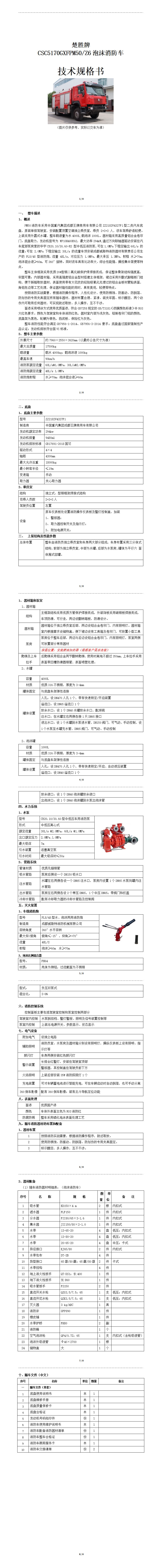 Q6型泡沫消防車,消防車,楚勝汽車集團
